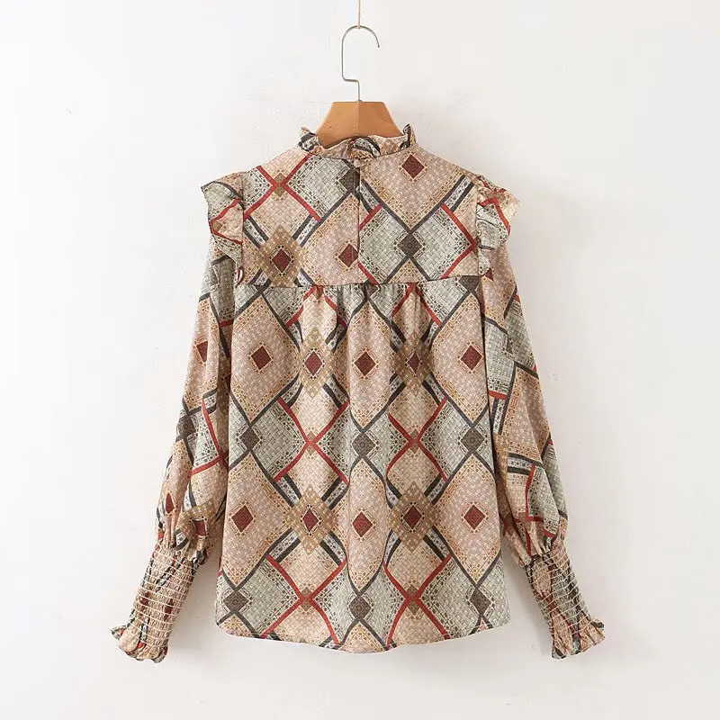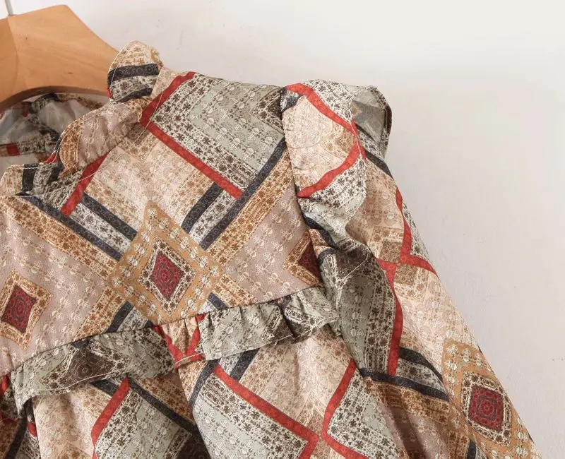 astounding New spring women lace ruffled collar geometric print casual kimono blouse shirts women long sleeve
