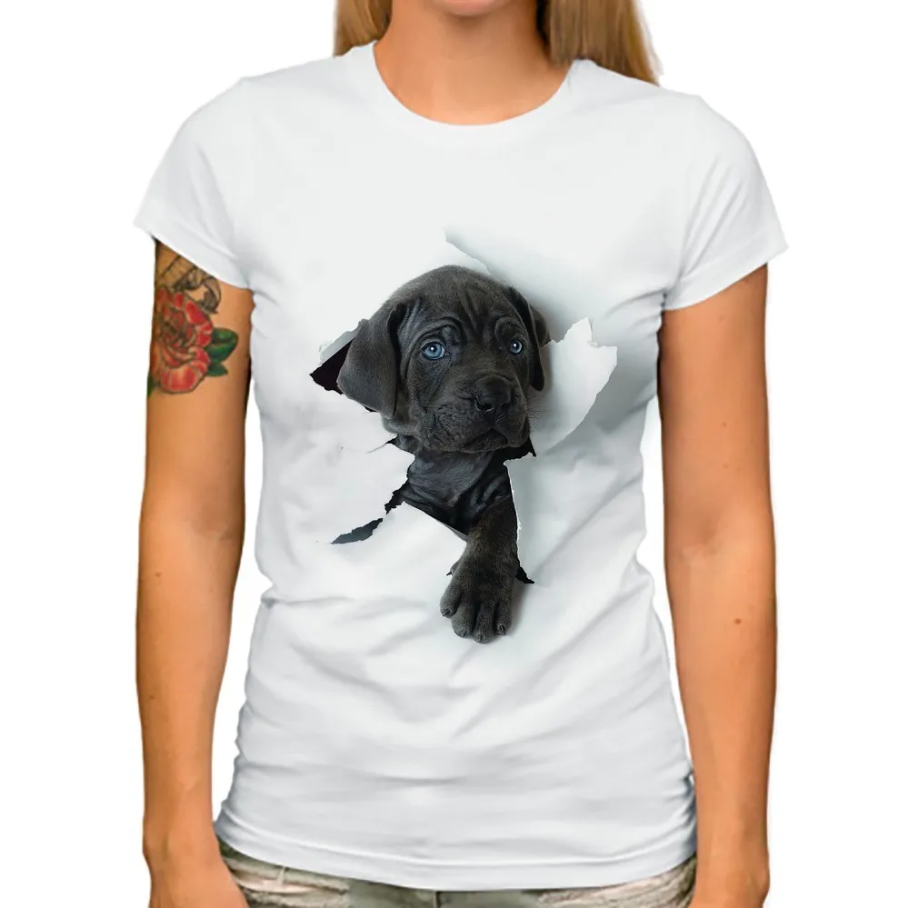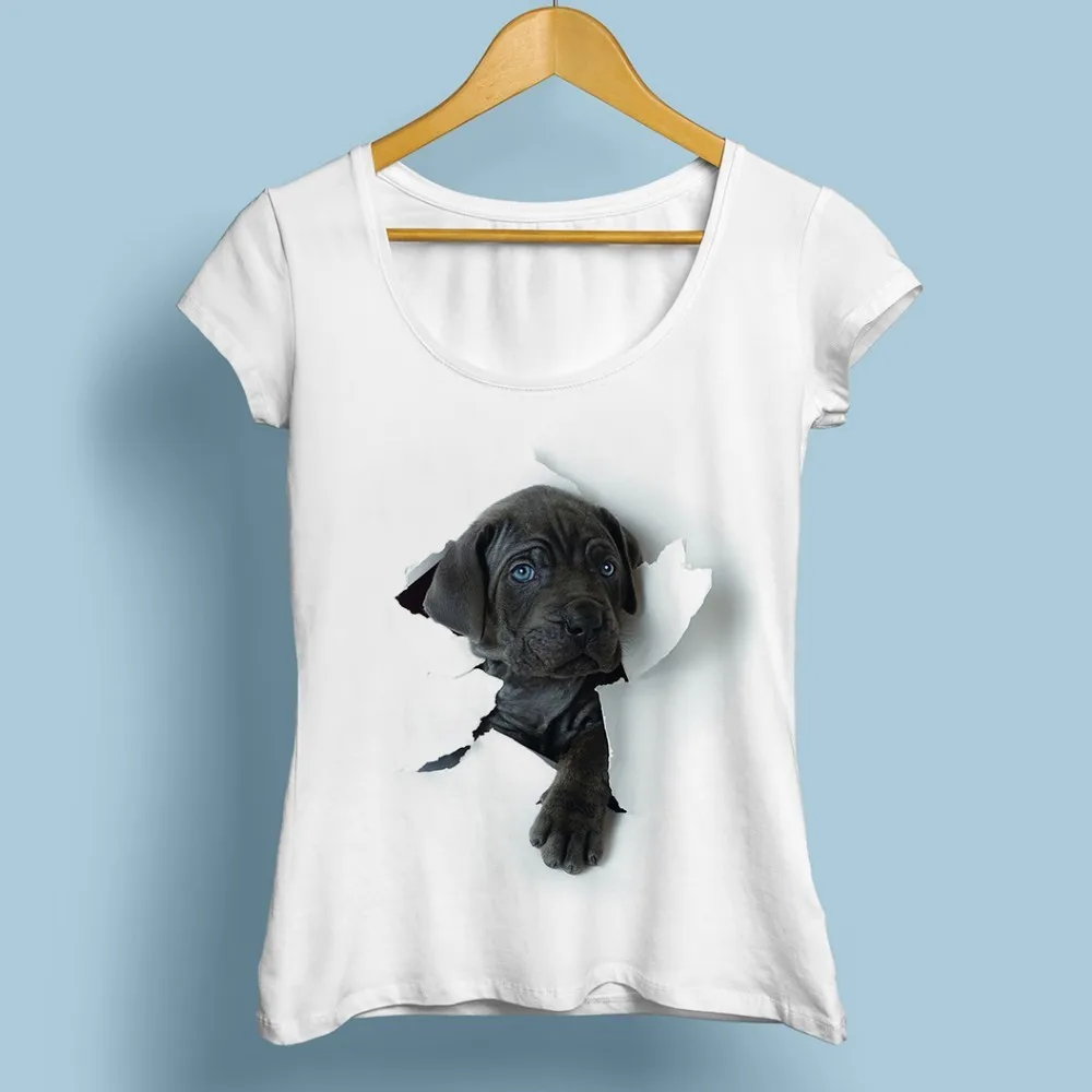 Finest cute cane corso dog break out vivid 3d tshirt women 2018 new white casual breathable t shirt femme